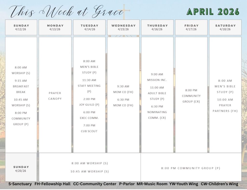 At Grace we strive to be a caring community of believers sharing the Gospel